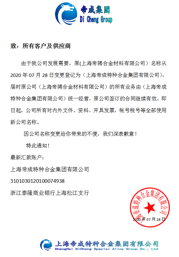 欢迎您访问上海帝成特种合金集团有限公司!